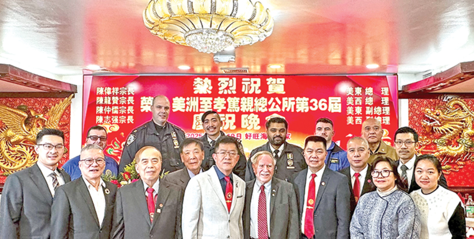 纽约至孝笃亲公所近日举行晚宴,隆重庆贺陈伟祥宗长荣膺美洲至孝笃亲总公所第三十六届美东总理,包括民选官员、嘉宾、警界人士及侨团代表数百人出席活动,并送上热烈祝贺。...