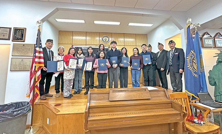 纽约华裔美国退伍军人会举行圣诞午餐会和奖学金颁奖典礼。(韩清湲摄)