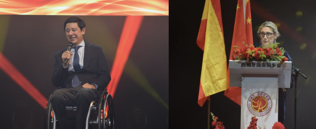(马德里市议会主席博尔哈·范胡尔(Francisco de Borja Fanjul)左一、Boadilla del Monte市政府新闻传播、社会事务、残障与多样性事务部部长玛丽亚·卡尔门迪娅女士(María Garmendia Martín)受邀出席庆典活动,并发表致辞感谢, 摄影/乔伊)