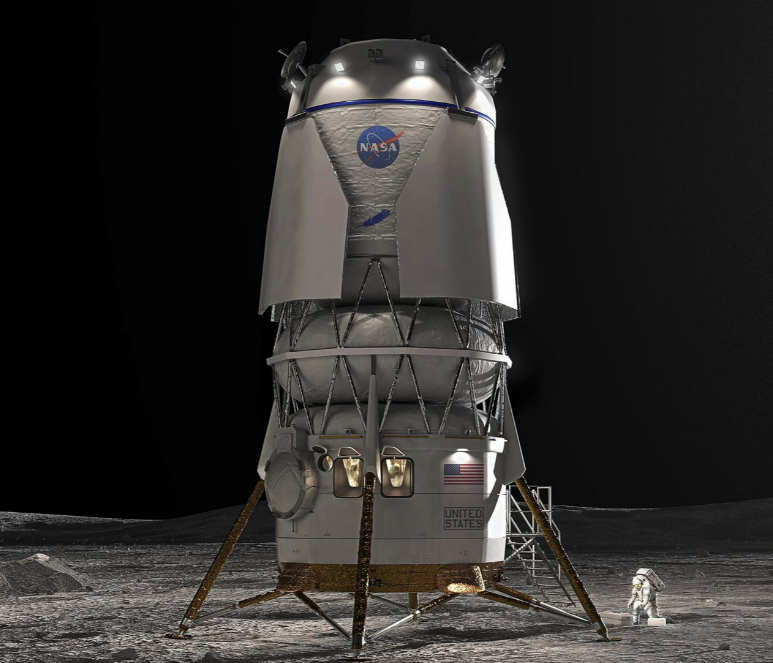 此外,NASA还可以考虑蓝色起源公司基于无人版“蓝月亮”MK1月球着陆器进行改装的方案。目前,蓝色起源公司研制的“蓝月亮”MK1月球着陆器已基本完成主要系统集成,目标于2026年第一季度由新格伦火箭发射升空,尝试在月球南极的沙克尔顿撞击坑着陆。该着陆器高8.5米,能将3吨有效载荷送至月面。同时蓝色起源公司还在建造第二个“蓝月亮”MK1着陆器,计划在2027年将NASA研制的“毒蛇”月球车送到月球表面。尽管“蓝月亮”MK1着陆器的生产配套设施基本齐全,但蓝色起源需要在未来两年内实现从无人着陆器到载人着陆器的改装并完成相关可靠性测试,时间同样非常紧张。