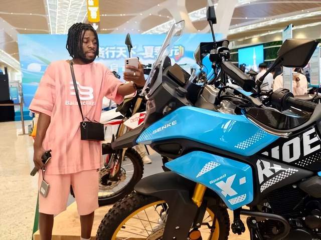 来自非洲的留学生PHAREL BIENVENU在现场开启直播,镜头对准江门摩托车,兴奋地向海外粉丝推介:“很多非洲人都喜欢中国摩托车,我邀请全世界的人来中国买摩托车,想要好摩托车,就来中国看看,这里有好品牌!”说完,他竖起大拇指。