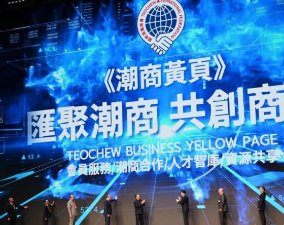 以根脉亲 家国兴为主题的第二十三届国际潮团联谊年会29日在广东潮州开幕,来自全球165个潮人社团的近1800名代表齐聚一堂,叙乡情、谋未来。 当天,潮商黄页正式上线。潮货出海、