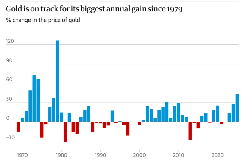 本周一早间,现货黄金突破3800美元/盎司,续创历史新高,日内涨超1%。现货白银日内涨2.26%,报47.09美元/盎司。 现货黄金今年以来已经累计上涨近45%,不仅跑赢今年所有其他主要资产类