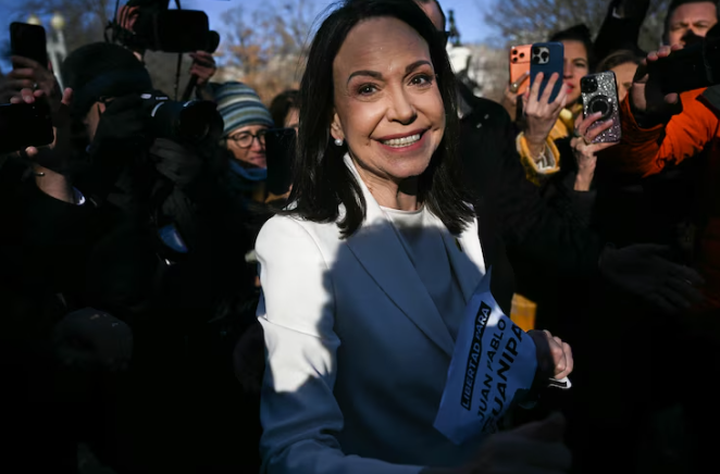 美国总统唐纳德特朗普(Donald Trump)周四会见了委内瑞拉反对派领导人玛丽亚科琳娜马查多(Maria Corina Machado),后者向他颁发了诺贝尔和平奖奖章。总统称之为相互尊重的美妙姿态 特朗普在
