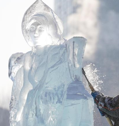 1月3日,黑龙江哈尔滨,蒙古一队选手进行冰雕《天堂召唤》创作。(无人机照片)于琨 摄 1月3日,黑龙江哈尔滨,各国选手进行冰雕创作。无人机照片)于琨 摄