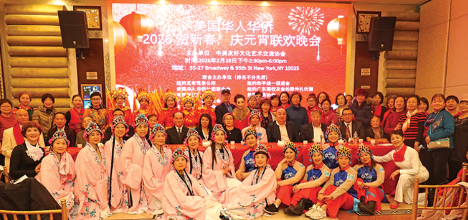 新春佳节即将来临,由中美友好文化艺术协会主办的美国华人华侨《2026贺新春、庆元霄大型联欢晚会》,将于2月28日在曼哈顿登场,届时侨胞们将欢天喜地共庆传统的新春佳节! 在近