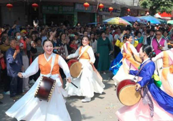 龙狮表演铿锵开场,韩国海南郡艺术团带来韩国传统鼓舞,点燃现场氛围。夜幕降临,千架无人机腾空而起,在夜空中编织出光影画卷...... 在陈璘将军诞辰494周年之际,2026年云浮市云
