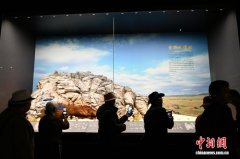 10月12日,内蒙古呼和浩特市,海外归国定居藏胞在内蒙古博物院了解金斯太洞穴遗址。当日,侨连五洲海外归国定居藏胞代表人士国情教育活动在呼和浩特进入第一天行程。40余位海外
