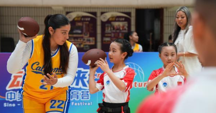 3月30日,来渝参加2026动向未来中美青少年体育荟篮球活动的美国加利福尼亚州10所中学的46名女子篮球队员及教练员,走进重庆市南开中学校,与中国学生切磋篮球技艺,并体验踢毽子