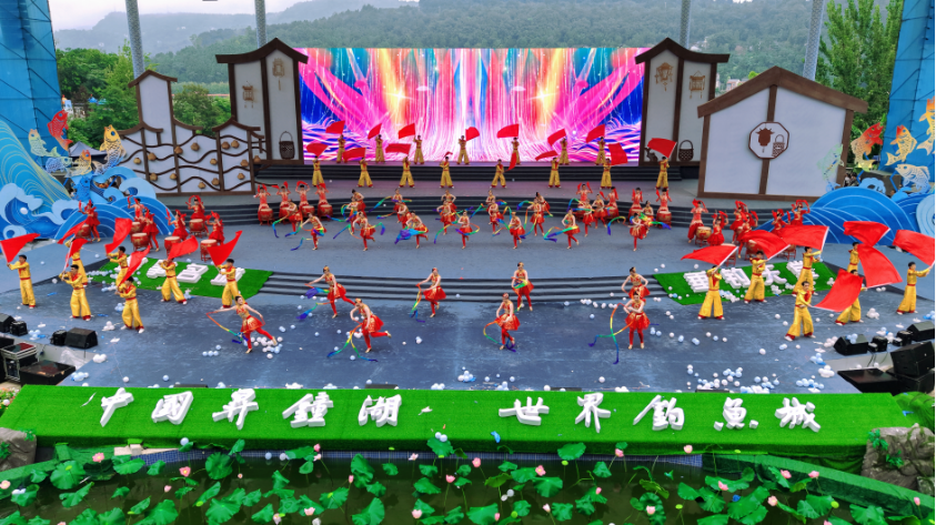 演出以“山、水、鱼、人”为主线,依次呈现四大篇章。情景杂技舞蹈《碧水长恩》以高难度的杂技舞蹈动作,致敬升钟湖的建设者;非遗群星秀《皮影鱼跃图》创意十足,将南部皮影艺术与鱼跃之趣巧妙结合,赢得观众阵阵掌声;充满动感的《炫动时空》将古典艺术与时尚元素相结合,充满活力与朝气;《印象南充》将南充的历史文化、风土人情融于华美的歌舞之中。最终,演出在表演唱《逐梦升钟湖》的昂扬歌声中圆满落幕,为现场观众及海内外钓友奉献了一场彰显地域特色与时代精神的视听盛宴,完美烘托出大赛隆重热烈的开幕氛围。
