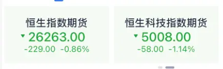 中国资产方面,中概股指数跌约2%,港股夜盘期货跌约1%。