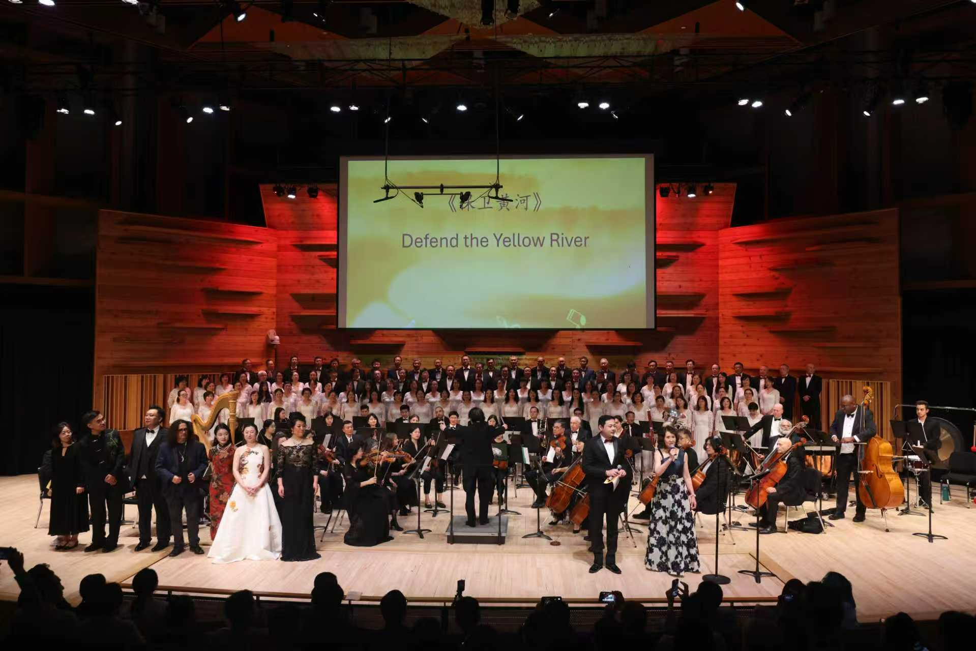 《黄河船夫曲》,大家唱得深沉悠扬、粗犷豪放;《黄水谣》的歌声婉转凄清、荡气回肠;《河边对口曲》的演唱堪称朴素平实、平易动人;万雪峰演唱的《黄河颂》、张春青奉上的《黄河怨》深沉激荡、如泣如诉。《保卫黄河》被台上全体歌者演唱得激情澎湃、千军万马、气势恢弘;而《怒吼吧,黄河》的磅礴大气、情绪充沛的演唱则仿佛在舞台上掀起了一个个怒涛。演出的尾声,当《保卫黄河》旋律再度响起时,台下观众和台上演员一同唱响了“风在吼、马在叫”的乐句,熟悉亲切而振奋人心的旋律振聋发聩地回响在整个音乐厅内。