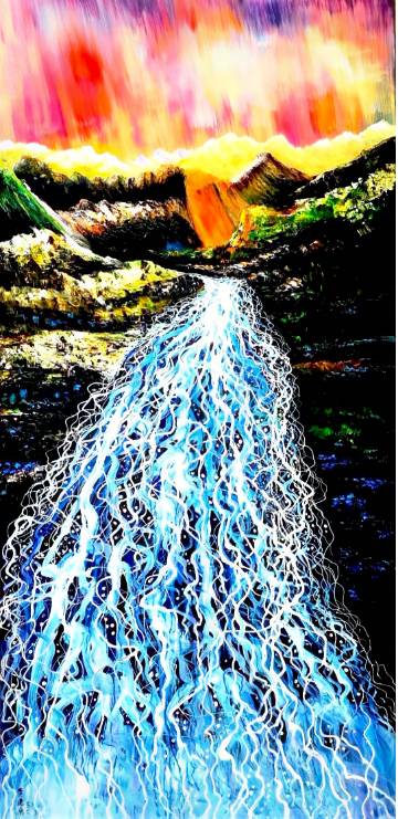 值得关注的是,估值首破千万的《金谷银流》是黄建南跨界艺术创新的代表之作。这幅作品的估值跃升,离不开他与美国艺术家丽莎·舒尔茨的深度合作。舒尔茨及其团队将《金谷银流》从油画转化为霓虹雕塑,以黄建南作品的色彩、纹理为基础,融合霓虹媒介的现代感,实现绘画与雕塑的跨界共生。