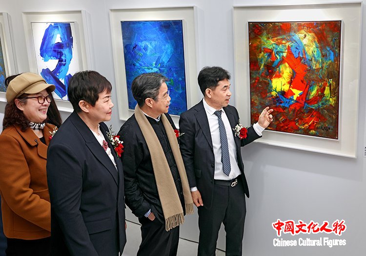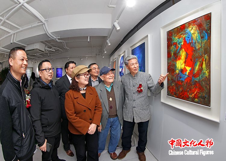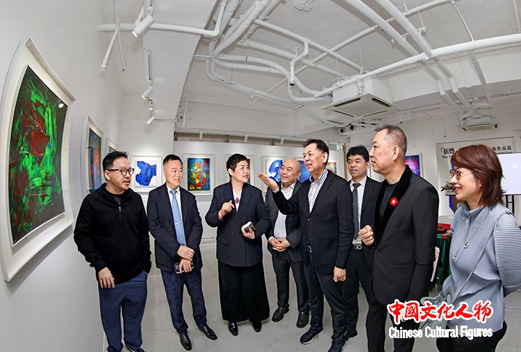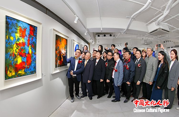 中国文化人物杂志社社长王保胜为香港著名艺术家何百里等艺术家嘉宾讲解展览作品