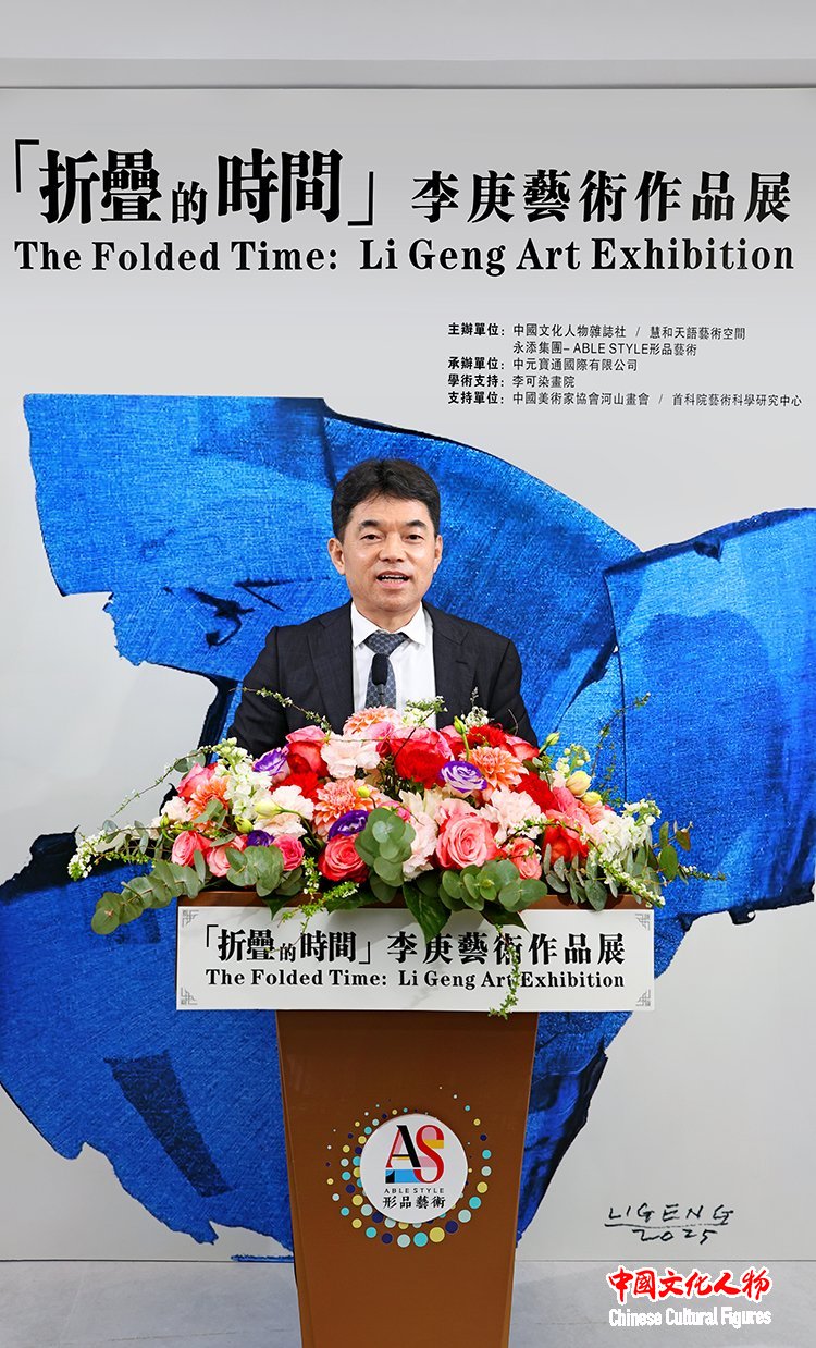 2026年1月25日,由中国文化人物杂志社、北京慧和天语艺术空间、永添集团-ABLE STYLE形品艺术主办,李可染画院学术支持,中国美术家协会河山画会、首科院艺术科学研究中心支持,中元宝通国际承办的“折叠的时间”李庚艺术作品展在香港铜锣湾开幕