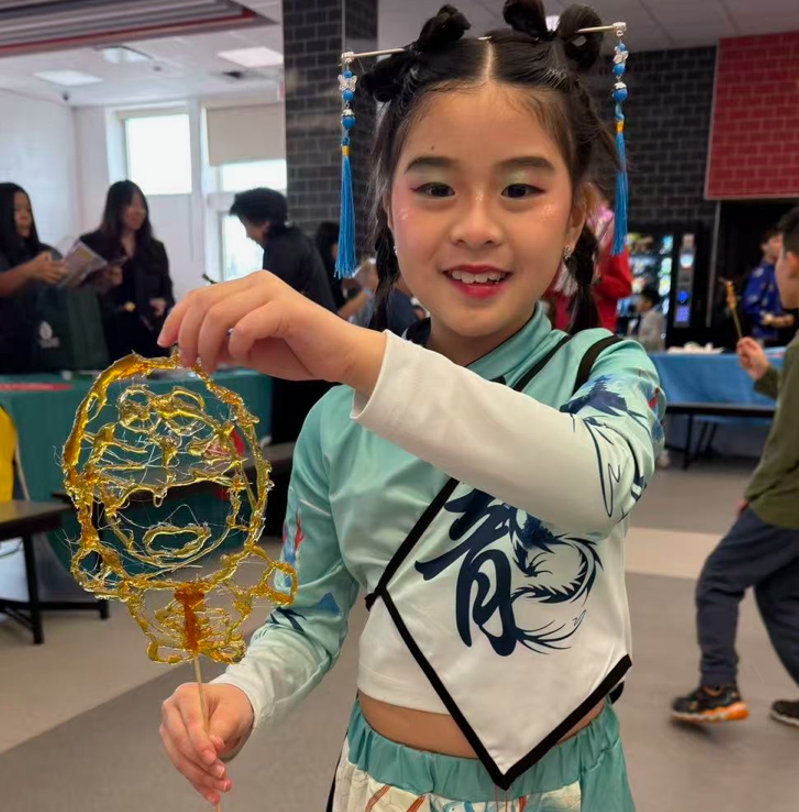 活动于下午一点在学校餐厅区开始。现场设置了丰富多彩的文化嘉年华活动,包括传统的糖画、充满童趣的脸部彩绘、艺术气球制作以及深受孩子们喜爱的大型充气城堡。这些活动吸引了许多小朋友和家庭参加,让他们在玩乐中了解中国文化。现场还有大家喜爱的波霸奶茶、传统面食和各类美食摊位,气氛热闹非凡。此次活动也得到了社区的大力支持。包括乐易中文、律师事务所、AIG-AAF理财公司、中国信托、金门超市及老人院等机构都设立了摊位。此外,学区教委会副主席 Shannon Peng、学区总监 Dr. Edward Aldarelli 以及多位教委会成员(Jerry Shi, Ralph Errico, Anjana Patel, Virginia White, Russell Azzarello)也亲临现场,表达了学区对多元文化教育的支持。