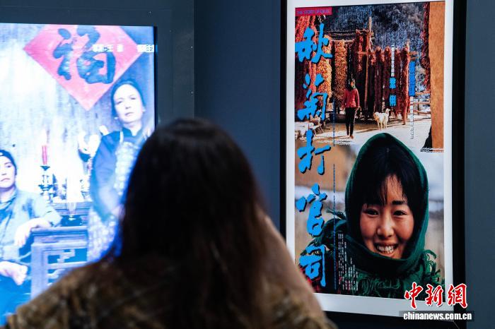 图为来宾观赏银都出品的电影海报等资料。中新网记者 侯宇 摄