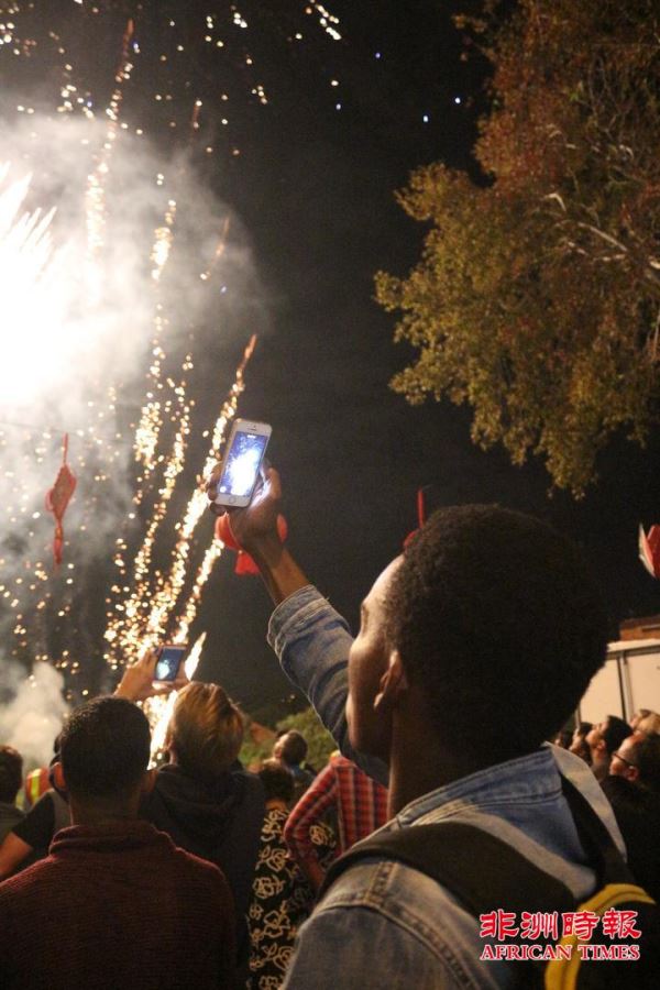 今天的约堡唐人街张灯结彩、锣鼓喧天、龙腾狮舞、鞭炮齐鸣、烟花漫天,到处都洋溢着中国农历新年的欢乐气氛。随着夜幕的降临,这条600多米长的街道已经被布置的格外耀眼。与往年相比,最大的亮点是唐人街管委会在主街道的一侧搭建了表演舞台,邀请了300多名嘉宾观看演出、品尝美食。