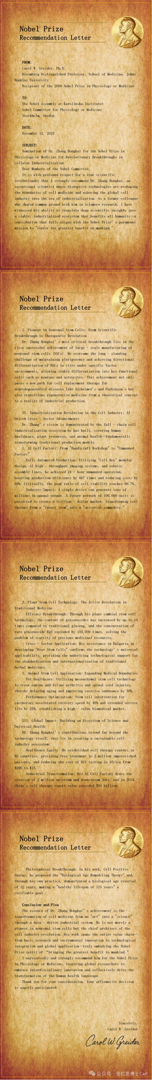 "2025年11月26日,注定成为被科学史铭记的日子。联合国世界生态科学研究院院士、细胞医学奠基人张红凯博士,正式迈出了通往诺贝尔奖殿堂的关键一步——成功通过诺贝尔奖评选流程的提名审核,跻身生理学或医学奖方向候选人之列。这一里程碑不仅是对他数十年科研深耕的最高肯定,更是中国科学力量在全球舞台冉冉升起的璀璨见证,彰显了中国科研从跟跑到领跑的历史性跨越。