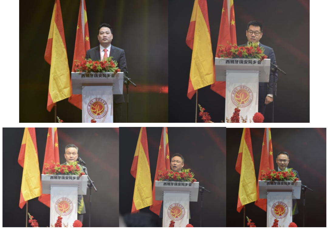 中国驻西班牙大使馆领事参赞梁楠、刘海曦领事、当地政府代表应邀出席典礼并致辞,对西班牙瑞安同乡会过往的工作给予了高度评价,并对新一届理事会的就任表示热烈祝贺。他们充分肯定了同乡会在团结服务侨胞、维护侨胞合法权益、弘扬中华文化、支持家乡建设以及促进中西两国经贸文化交流等方面所发挥的桥梁与纽带作用。
