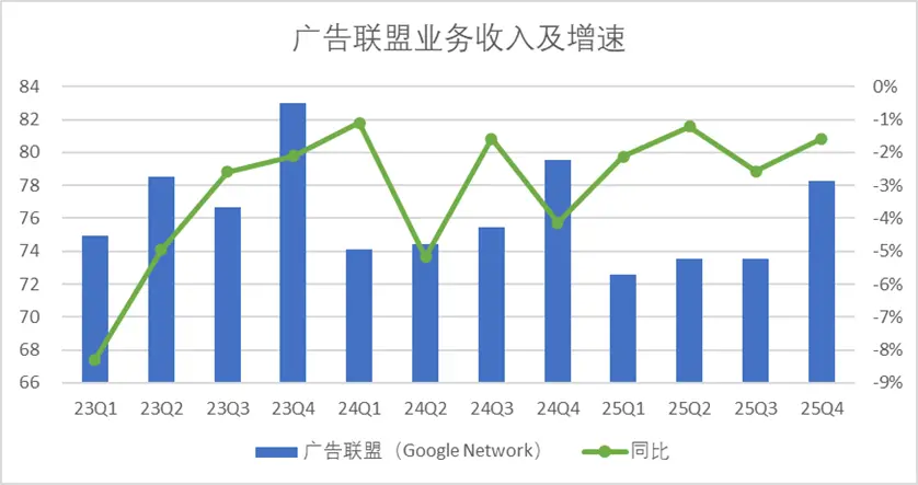 谷歌广告联盟四季度收入78.28亿美元,环比微增,同比下滑1.4%,是谷歌唯一营收下滑的业务线。针对广告联盟而言,还是此前的逻辑:侧重点在逐渐转移,传统的展示广告已经成为了谷歌内部优先级相对较低的业务。