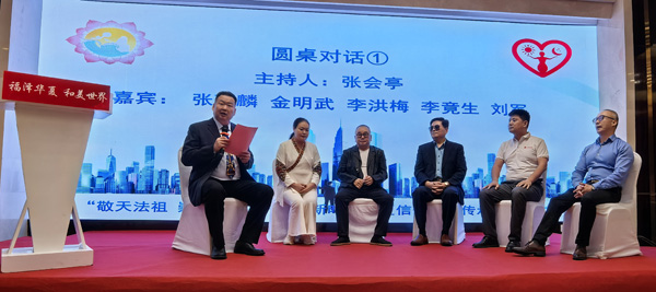 著名双语主持人张会亭主持了大会圆桌对话,北京文投原副总经理、华夏文化促进会副会长张荙麟,解放军理工大学原政委金明武,全国劳模、湖南明意湖集团董事长李洪梅,中国起源地文化传播研究中心主任李竟生,四川大学博士生导师、老子研究会会长詹石窗,武警警种学院原研究室主任、华夏文化促进会城乡融合发展委员会副会长张跃林,福州市家庭教育研究会会长胥文玲,全球化智库(CCG)副秘书长刘军,人类先驱通讯社首席运营官高宪等来自学界、智库、文化机构的重要嘉宾,围绕信俗文化的现代转化、国际传播、社会价值等议题展开了富有建设性的深度对话,碰撞思想火花。