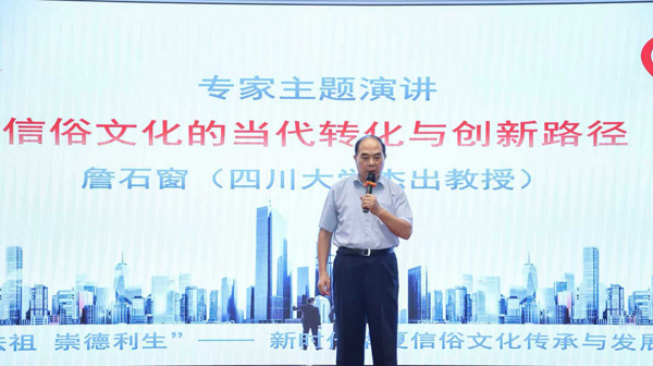 四川大学杰出教授、博士生导师詹石窗在主题演讲中,从学术高度阐释了信俗文化在连接历史与未来、凝聚民族精神中的不可替代作用。