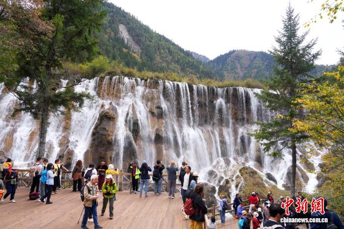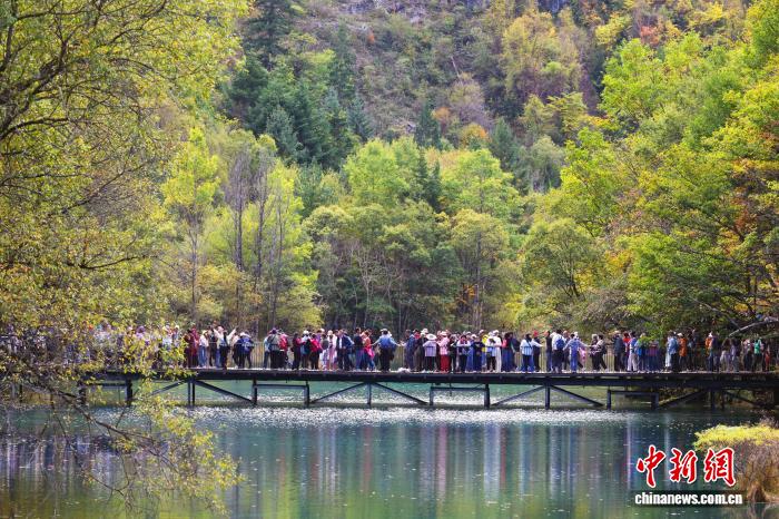 游客在九寨沟景区游览。记者 安源 摄