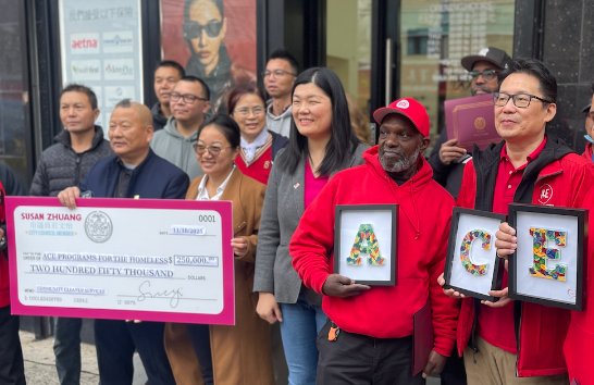 纽约市议员庄文怡10日在布碌仑八大道表彰了ACE无家可归者援助项目(ACE Programs for the Homeless)的工作人员,感谢他们为八大道在内的43选区提供优质清洁服务,同时庄文怡还宣布拨款