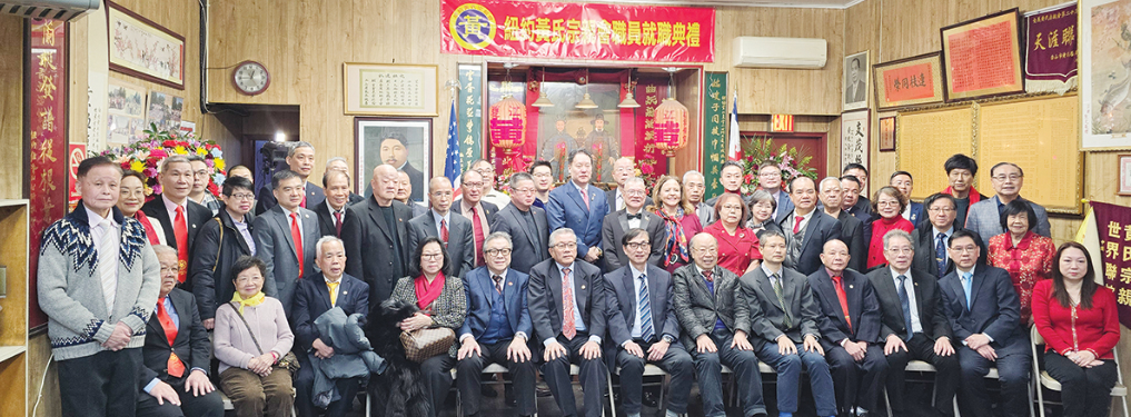 纽约黄氏宗亲会于元旦当天庆祝136周年暨新一届职员就职典礼,宗亲会大楼悬挂醒目的纽约黄氏宗亲会同仁恭贺新禧横额为华埠增添浓浓节日气氛。就职仪式吸引三百余位政商界人士及
