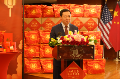 1月29日,中国驻纽约总领馆举行2026年温暖迎春共庆中国年春节暖心包发放启动仪式,陈立总领事出席并致辞。领区侨学界代表150余人参加。 陈立表示,给同胞们送上暖心包,已经成为