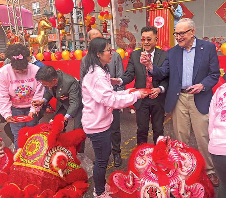 爆竹齐鸣八大道,彩球纷飞好运来,布碌仑华人协会(BCA)8日在八大道52街总部大楼前隆重举办一年一度的新春醒狮大游行,众多警政官员和各界嘉宾出席,与华社民众同庆马年新春,