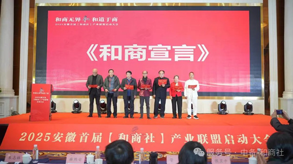 《和商倡议》启动仪式隆重举行;谢煦安携手淄博管子学会会长、养慕中国董事长徐学民、中国华侨传媒网董事长鞠成立,安徽省陕西商会执行会长兼秘书长郭宏博等多位嘉宾共同宣读了《和商宣言》,并举行了倒计时启动仪式。这一举措标志着“和商”思想将在新时代焕发出更加璀璨的光芒。在此,我们郑重附上《和商宣言》的全文: