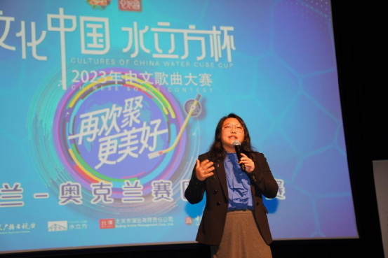 新西兰华星艺术团李芬团长在致辞中说“文化中国·水立方杯”中文歌曲大赛在全球自2011年起举办,今年已经是第十三届,新西兰华星艺术团很荣幸能够自2016年起加入这个庞大的队伍,至今已经连续举办了八届,即使在过去的三年疫情当中也没有中断。在往届的水立方杯中,作为奥克兰赛区承办方,新西兰华星艺术团每年都获得了“最佳组织奖”,我们赛区选送的选手们也都取得了非常优异的成绩,其中包括全球十强及全球冠军的荣誉等。