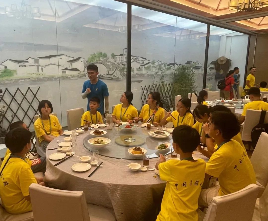 2023“中国寻根之旅”夏令营江苏无锡营老师、营员们在无锡市穆桂英美食广场