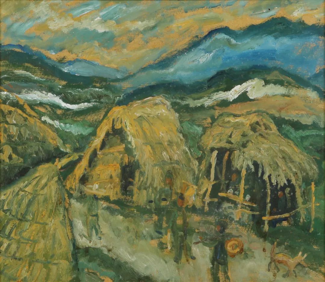 村居 纸本油画 33x27cm 1980蒋奇谷