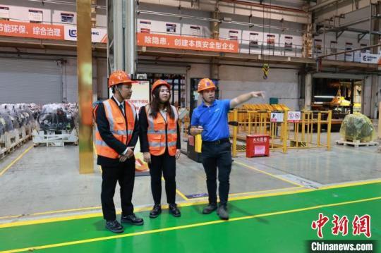 日前,泰国留学生在柳工工厂实地“取经”。 林馨 摄