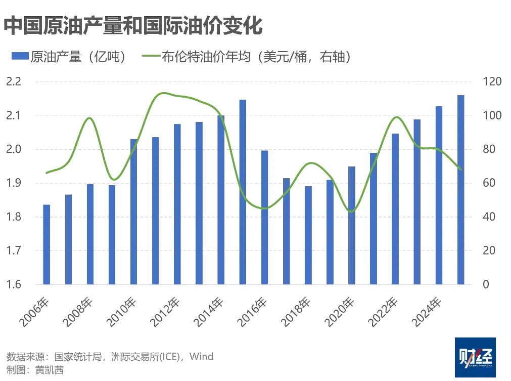 2019年,为扭转国内原油产量连续三年的下滑势头,中国政府推动实施增加储量、提高产量的油气增储上产战略,要求石油企业要落实主体责任,大力提升油气勘探开发力度。到2025年“七年行动计划”收官时,全国原油产量已从2019年的1.92亿吨增加至2.16亿吨,创历史新高,连续四年稳定在2亿吨以上;天然气产量从1753.6亿立方米增加至2619亿立方米,连续九年增产超过100亿立方米,增产潜力比原油更大。