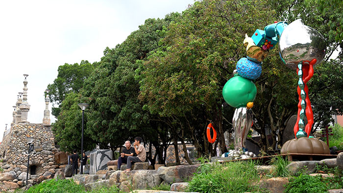 在以文化激活乡村活力的众多社会力量里,陈文令是以艺术家的个体身份,将艺术引入乡土的一个代表。从2021年开始,陈文令回到安溪县金谷镇老家,自掏腰包,通过雕塑、装置以及景观设计,建造了金谷溪岸艺术公园,为村里的老人打造了一个生气勃勃的后花园。