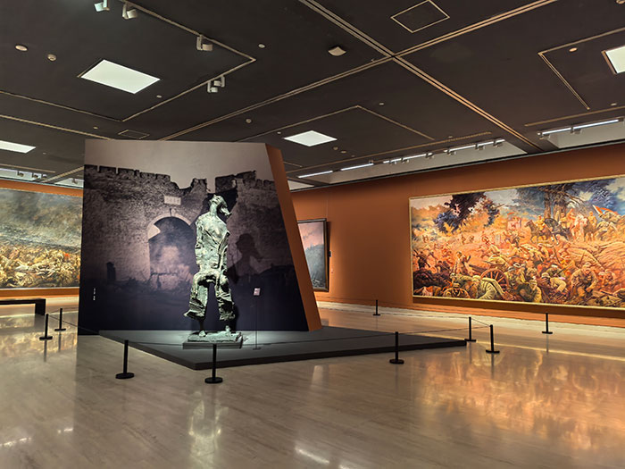 笔刀为枪,丹青铸魂。走进展览,80年波澜壮阔的抗战主题美术创作历程映入眼帘。在中国人民抗日战争的烽烟中,一代美术家以笔刀为武器,呐喊抗争、凝聚民心、鼓舞战斗,在民族危亡时刻筑起坚不可摧的精神长城。和平岁月里,美术家们怀着浓厚家国情怀,持续在抗战主题上用心用力,让伟大抗战精神愈发焕发光彩。进入新时代,美术家们以一批主题性创作续写豪迈的时代篇章。这些作品汇聚展出,将引领美术工作者更好担负起新的文化使命,创作推出优秀作品,传承弘扬伟大抗战精神。同时,鼓舞人们为维护世界和平与发展、推动构建人类命运共同体,实现中华民族伟大复兴贡献力量。