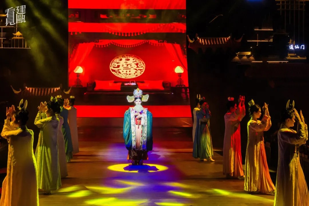 “掌一盏心灯,照千年建州。愿此灯引路,带您领略'八闽第一宴'的华彩篇章!”随着仕女的吟诵,宾客们在《心灯澄明》的迎宾仪式中,开启了一场70分钟的建州文化沉浸之旅。