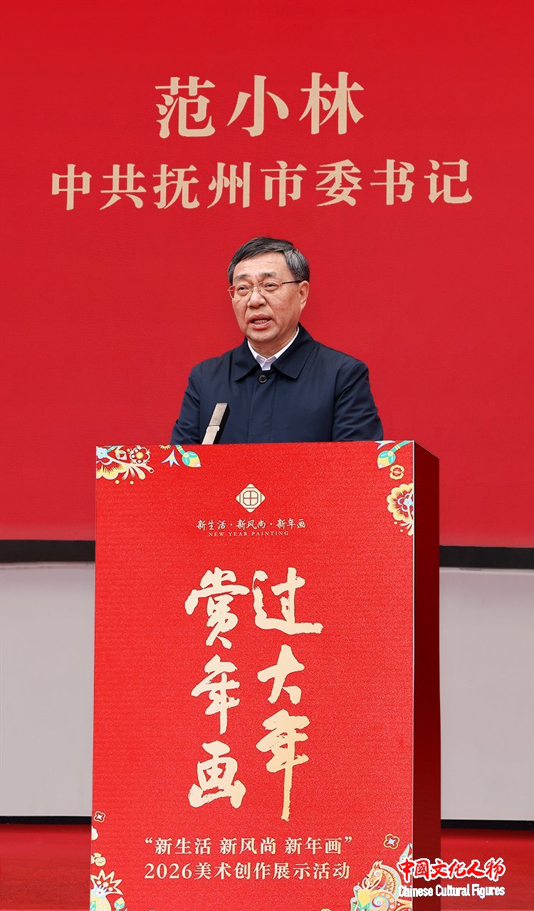 2026年2月11日,由中央宣传部文明实践局、文化和旅游部公共服务司、中国美术家协会、中国民间文艺家协会共同主办,文化和旅游部全国公共文化发展中心、中国文联美术艺术中心、中国文联民间文艺艺术中心承办,北京市文学艺术界联合会、江西省文学艺术界联合会协办的2026年“新生活·新风尚·新年画”美术创作展示活动在国家历史文化名城——江西省抚州市开幕