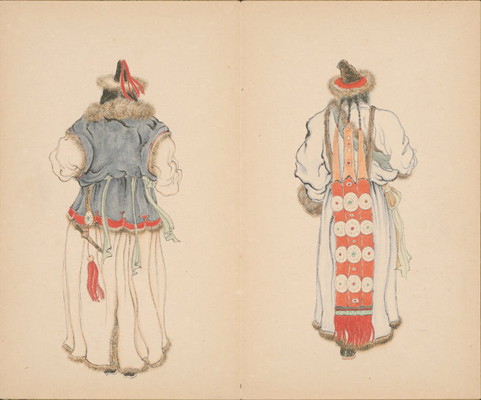 《蒙藏人物图》册页(局部),纸本水墨设色,15×25cm×9,1942年