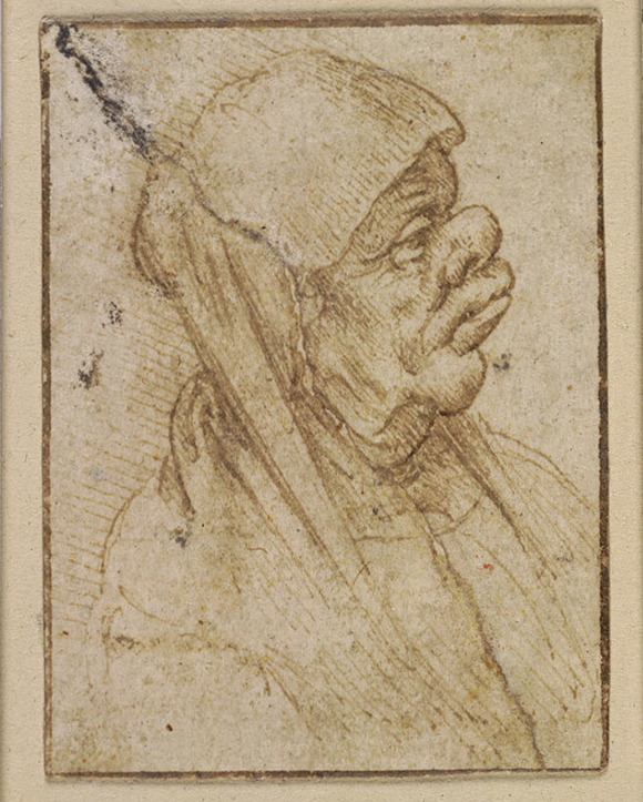 列奥纳多·达·芬奇(1452—1519),《老年女子漫画像》,1482至1499年,硬笔棕墨,理查德·佩恩·奈特遗赠© Trustees of the British Museum