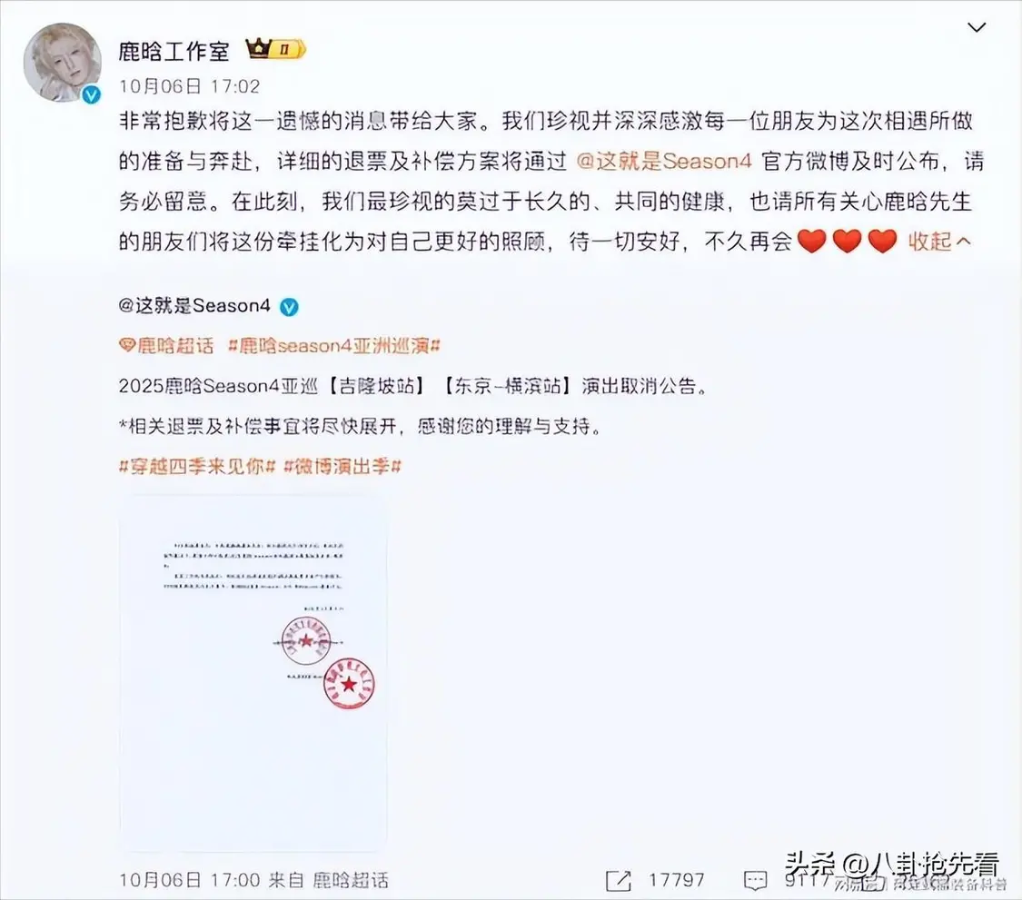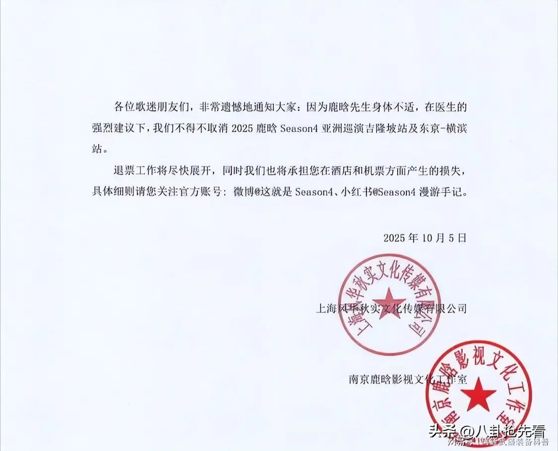 25年10月份的时候,鹿晗就曾取消过自己的演唱会,其实他为了这个演唱会也是很努力的,